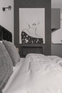 In our world, a STANDARD apartment does not mean a boring interior. Inside, a 160 centimeter wide bed awaits you along with a 42″ Smart TV opposite. A fully equipped kitchenette guarantees freedom – so you can prepare truly home-cooked food or simply enjoy a delicious Nespresso coffee. The bathroom has a spacious shower and a well-lit mirror. A closet, iron and hair dryer are also at your disposal.